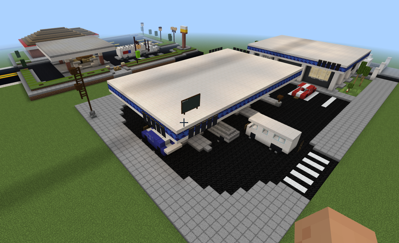 Gas stations were imported from www.minecraftplanet.com with boards posting the gas price
