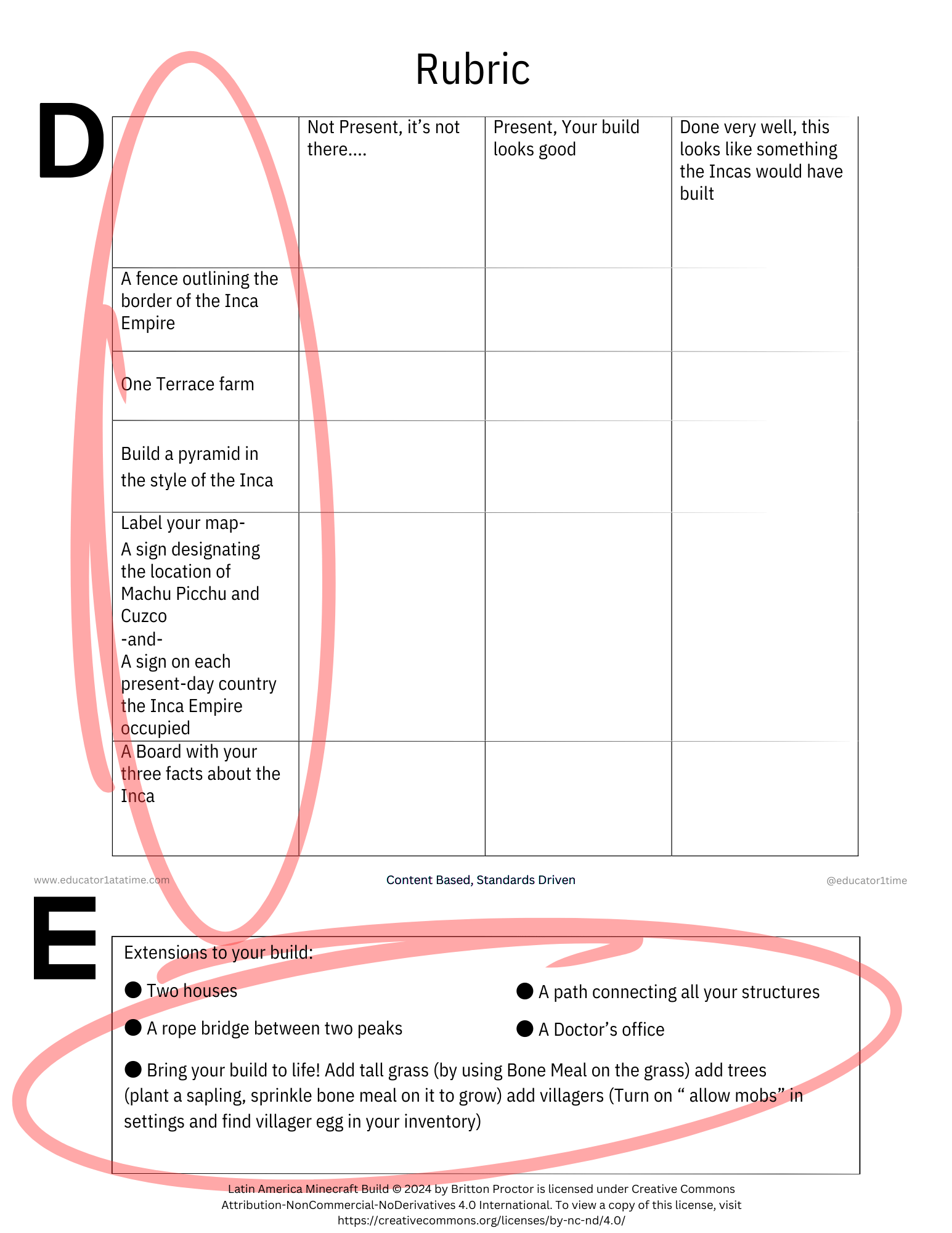 - In the rubric, students were asked to identify the current countries and civilizations occupied by labeling them with a sign. This was very difficult for students to do. I think this was a great idea, but next time, add that it is an optional build if students have time at the end of their assignment.